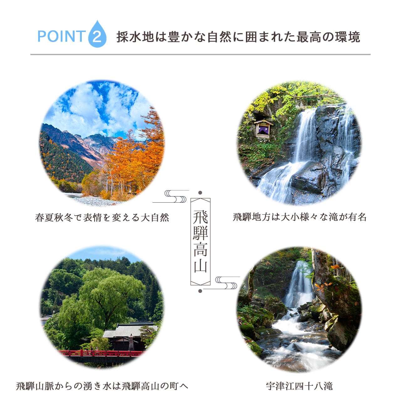 飛騨山脈の岩盤深層より湧き出る天然水で作られた大変飲みやすい天然水です。